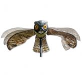 Jaag vogels de stuipen op het lijf met de Prowler Owl. Veel vogels zijn namelijk erg onder de indruk van deze bewegende uil. De vleugels wapperen in de wind, daardoor lijkt hij nog echter. Net alsof hij op jacht is. De intimiderende glazige ogen volgt de prooi. Vogels en ander ongedierte herkennen deze grote uil die alles eet en vangt. En zo verjaagt deze levensecht kunststof uil de vogels en ongedierte van uw terrein af.