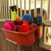Onmisbaar hulpmiddel voor in de stal; met deze draagbak heb je altijd al je benodigdheden dicht bij je. De bak met handvat kan met de bijgeleverde haken makkelijk bevestigd worden aan de wand van een paardenbox of een stabiele deur. Bijvoorbeeld te gebruiken voor de dagelijkse paardenverzorging, als draagbare gereedschapskist of voor klein tuingereedschap. De speciale uitsparingen in het midden bieden ruimte voor bijvoorbeeld hoefkrabbers en schroevendraaiers.
